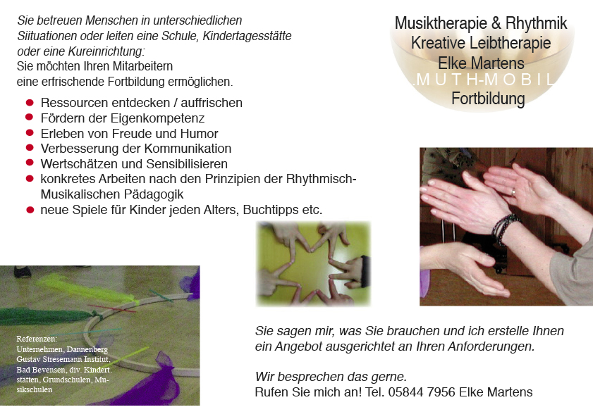den Aspekten der Kreativen Leibtherapie eng mit der Musiktherapie.